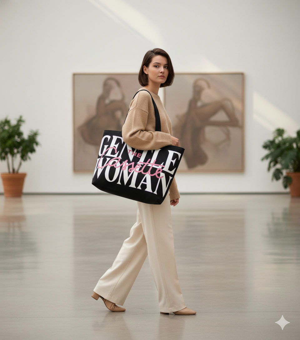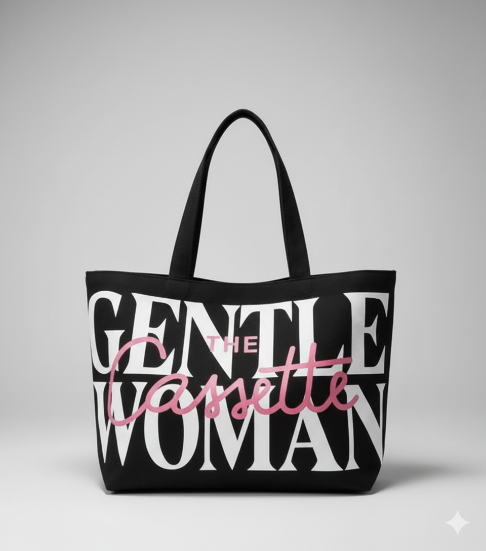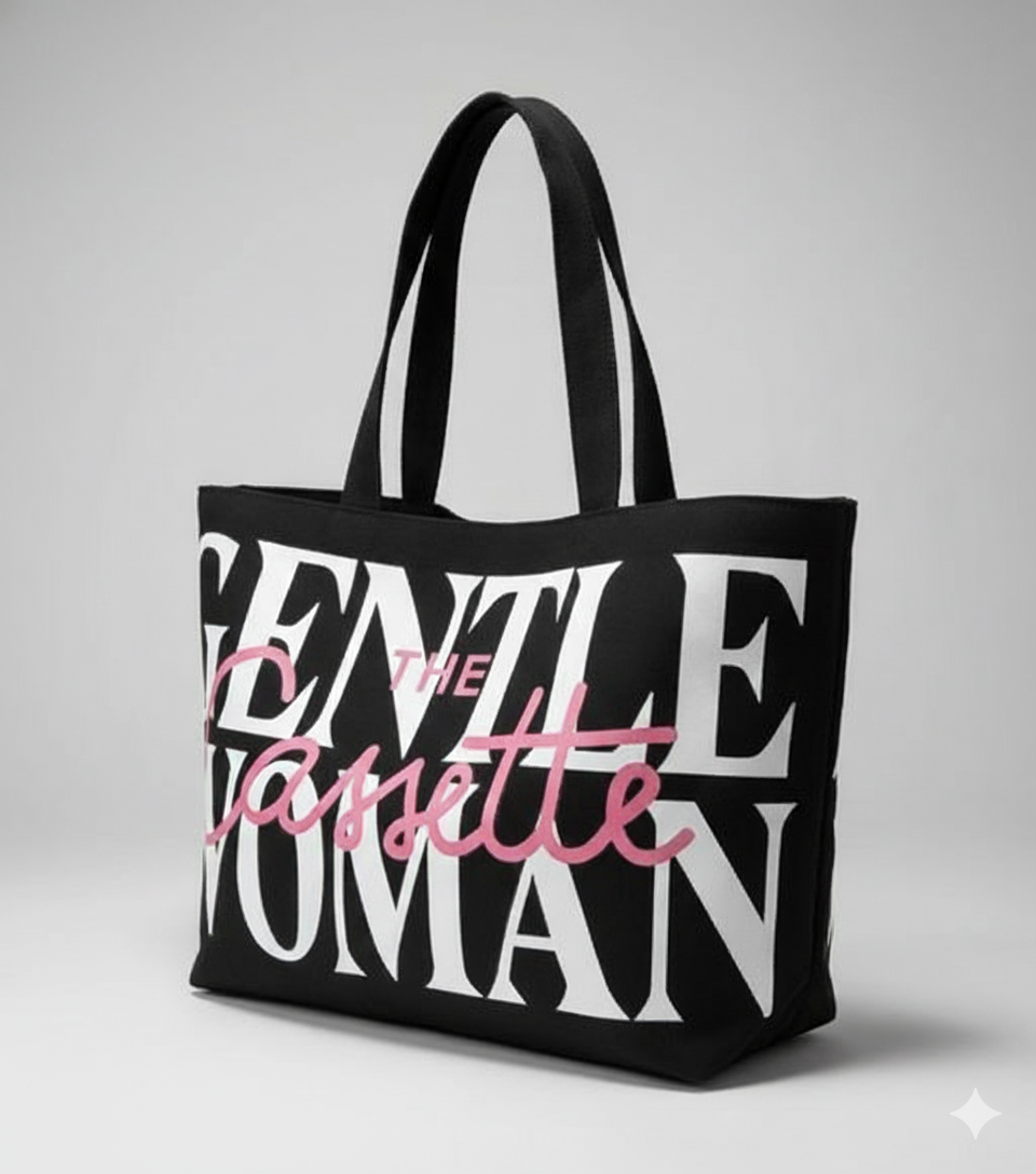 Make a bold statement with The Cassette Tote – Gentlewoman Edition, a modern icon of effortless sophistication. Crafted for the woman who exudes confidence and class, this tote perfectly blends minimalist design with powerful typography. Its sleek black base and contrasting white and pink lettering make it the perfect companion for both your chic city outings and relaxed weekend looks.