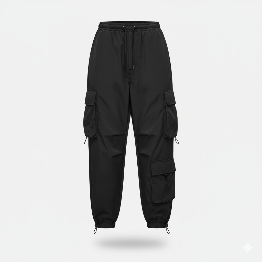 The elastic waistband with drawstring closure ensures a snug, customizable fit, while the sleek black tone adds versatility to your wardrobe — whether you’re styling it with a crop top, oversized shirt, or hoodie. Ideal for travel, casual outings, or athleisure days, these joggers combine everyday comfort with high-end street fashion appeal.
